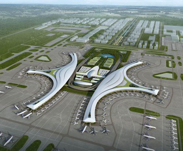 本工程招標T1、T2航站樓項目。航站樓由中央大廳、指廊和連接T1、T2之間的空中連廊構成。其中中央大廳地上四層,T1指廊地上二~四層,T2指廊地上二層,T1和T2航站樓均不設置地下室。航站樓最大高度為44.850m,總建筑面積約60.83萬平方米。其外形流暢獨特。