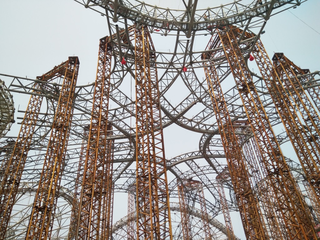 航站樓混凝土結(jié)構(gòu)南北長996m,東西方向?qū)?144m,由中央大廳、中央南和東北、東南、西北、西南五個指廊組成,中央大廳地下二層、地上五層,其他區(qū)地下一層,地上二~三層。地下一層為行李傳送通道、機(jī)電管廊系統(tǒng)和預(yù)留的APM捷運(yùn)通道,地下二層為高速鐵路通道、地鐵及輕軌通道的咽喉區(qū)段。航站區(qū)總用地面積約27.9ha,南北長1753.4m,東西寬約1591m,總建筑面積約103萬m2(含地下),其中航站樓總建筑面積約70萬m2,綜合換乘中心總建筑面積約8萬m2,停車樓總建筑面積約25萬m2。