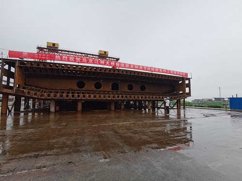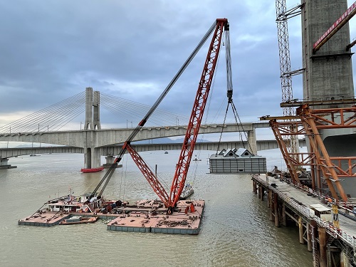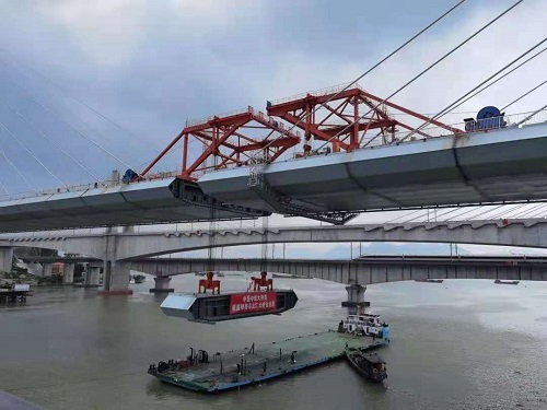 烏龍江特大橋是福廈高鐵全線控制性工程,大橋全長725m,孔跨布置為:72m+109m+432m+56m+56m。主橋2號墩塔高170m,3號墩塔高129m,主跨432m,為四線高低塔雙索面混合梁斜拉橋。本橋主梁福州側(cè)邊跨采用混凝土主梁和鋼箱梁,漳州側(cè)邊跨采用混凝土主梁,混凝土主梁和鋼箱梁間設(shè)鋼混結(jié)合段,中跨采用鋼箱梁。總用鋼量約1.3萬噸。