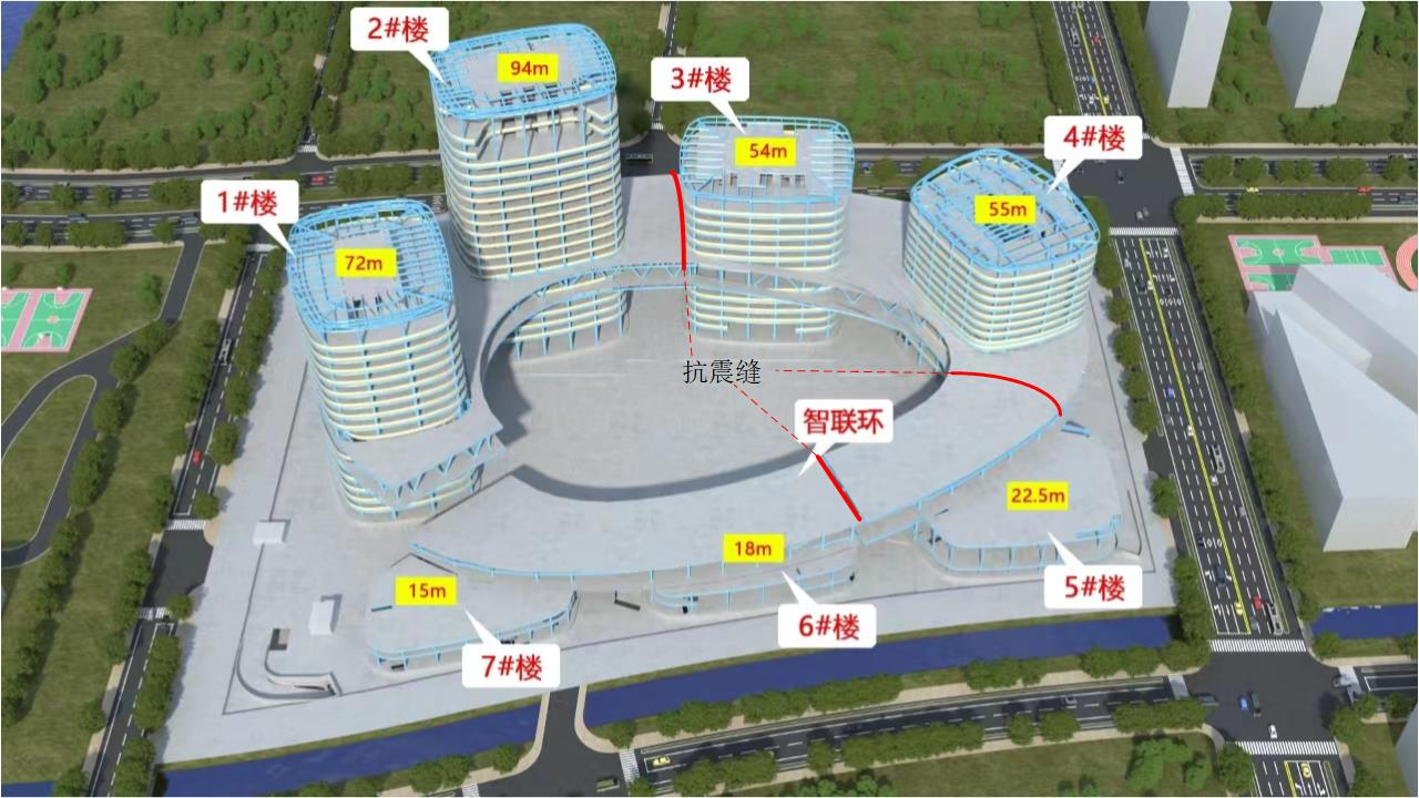 本工程鋼結(jié)構(gòu)分布于1#、2#、3#、4#、5#、6#、7#樓及智聯(lián)環(huán),總用鋼量約33000t。